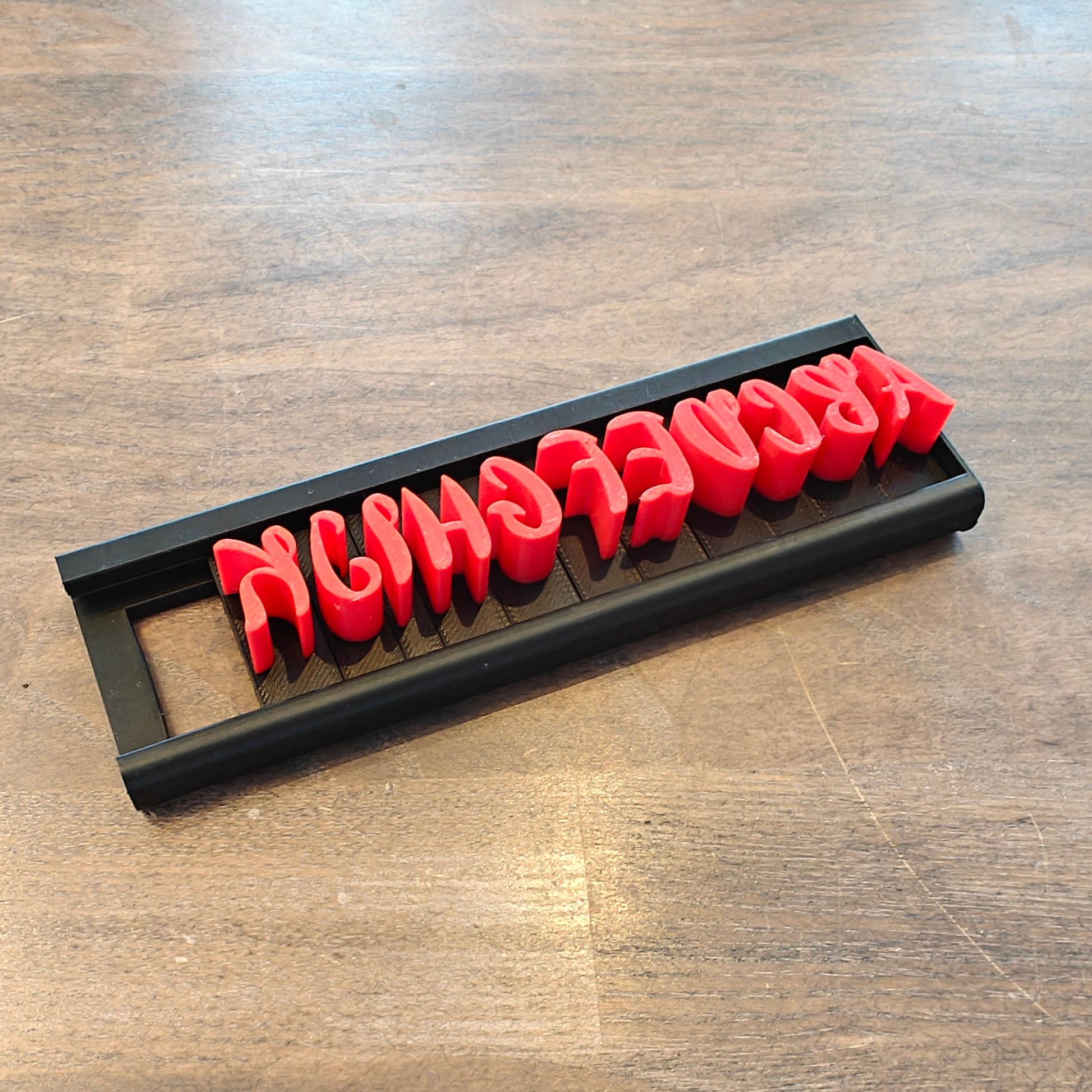 Instead of having to place each letter individually, we've developed a smart rail system that keeps the letters in place and ensures they are correctly aligned with each other. This means you can press whole words or sentences with perfect spacing and precise lines – every time, without the risk of crooked or uneven impressions.