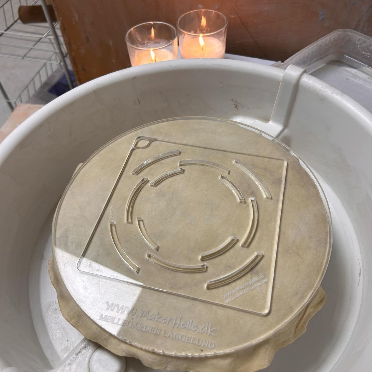 Use the chamois leather under your bat system for extra stability – especially if your potters wheel does not have pins. It prevents the plates from sliding and offers a more calm and controlled turning process.