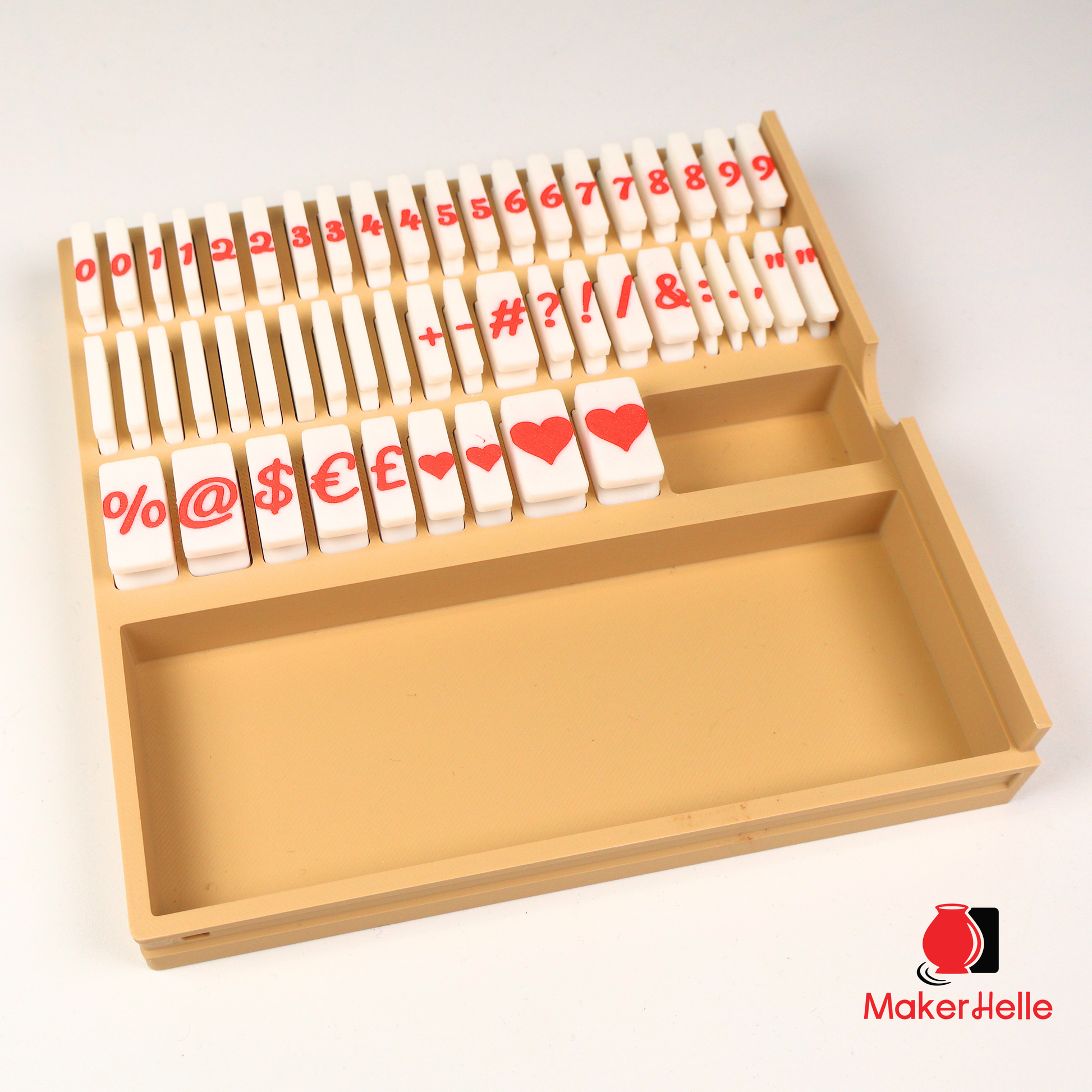 Æsken er designet med faste pladser til alle tegn, så du altid har overblik – og plads til at udvide.