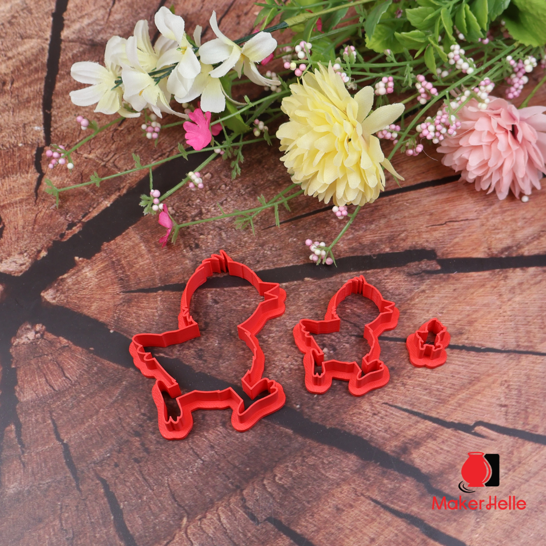 Udstikker – Gående Påskekylling En sød og livlig udstikker formet som en gående påskekylling – et klassisk symbol på forår, påske og nyt liv. Kyllingens let bevægelige positur giver et dynamisk og legende udtryk, som gør den perfekt til både små dekorationer og fortællende scener i leret. Udstikkeren fås i 3 forskellige størrelser, så du kan arbejde med alt fra