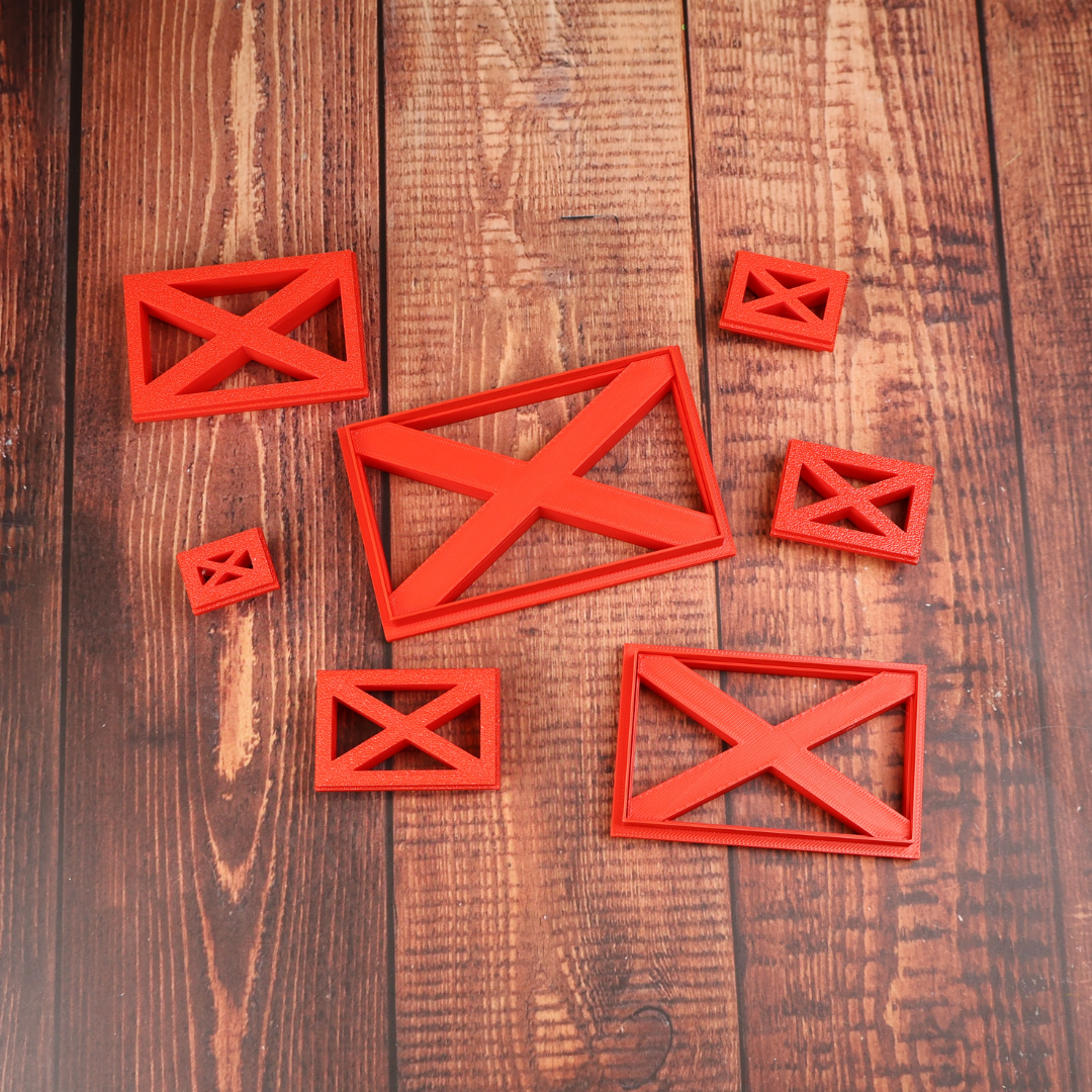 Sættet består af to dele: en udstikker og en præger, som kan bruges hver for sig – eller sammen, hvis du vil udstikke det skotske flag og præge det ikoniske diagonale kors. Udstikkeren laver den klassiske rektangulære flagform, mens prægeren tilføjer de rene linjer i St. Andrew’s kors, så flaget fremstår tydeligt og genkendeligt i leret.